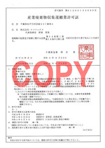 2007年6月 産業廃棄物収集運搬業許可取得(千葉県)
